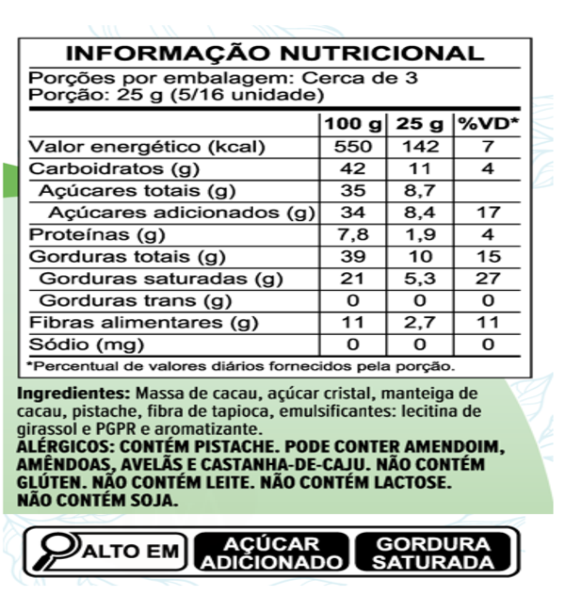 2. TABLETE CHOCOLATE COM PISTACHE 80G