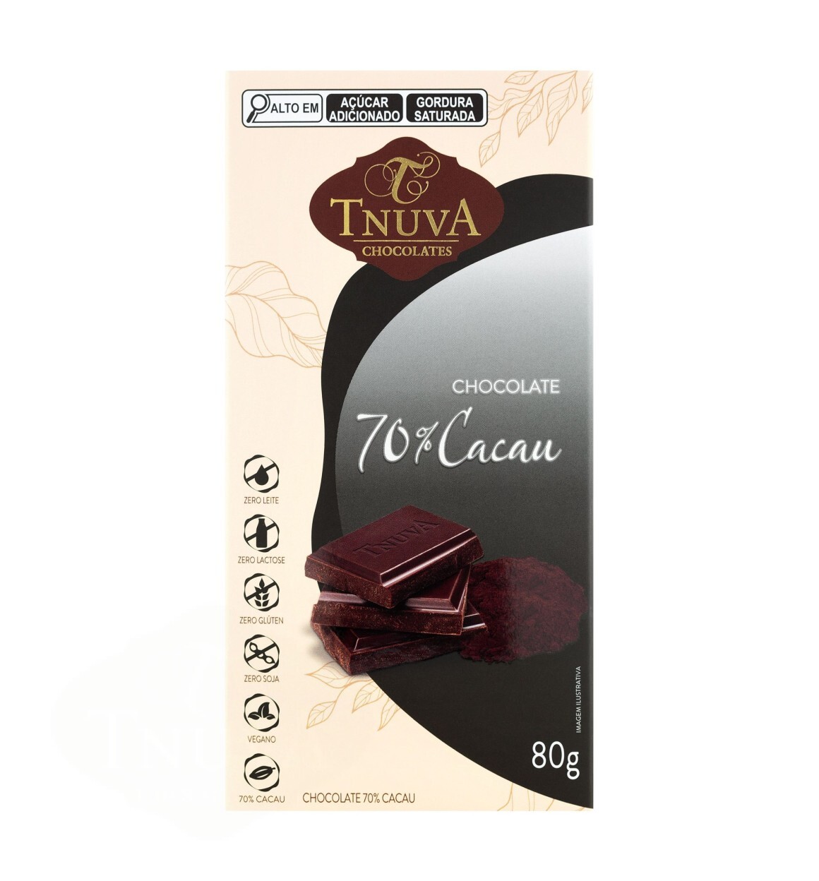 TABLETE CHOCOLATE 70% CACAU 80G - Zero Leite, Zero Glúten, Zero Soja, 100% Vegano