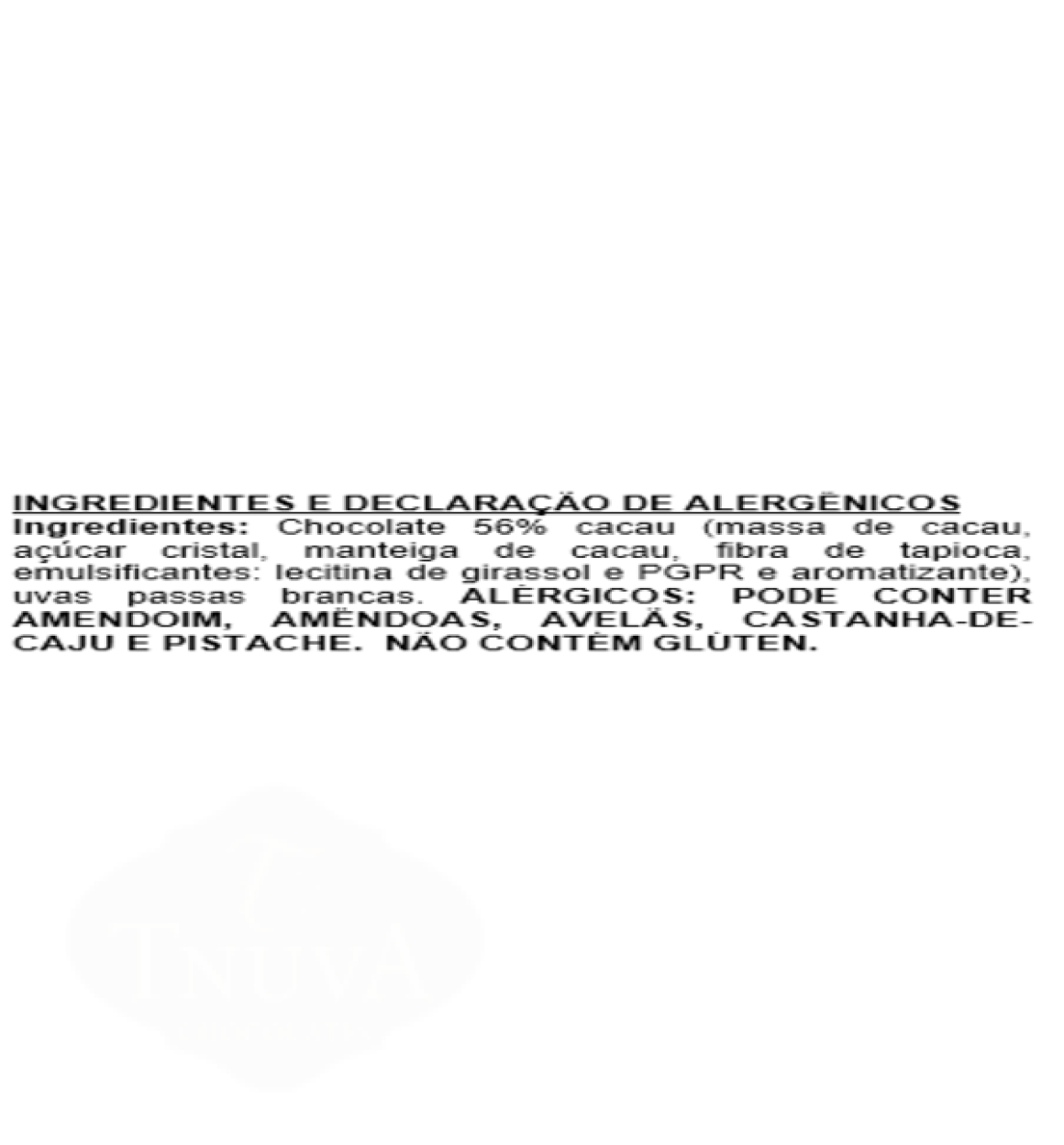 PODE CONTER AMENDOIM, AMÊNDOAS, AVELÃS, CASTANHA-DE-CAJU E PISTACHE. NÃO CONTÉM GLÚTEN.